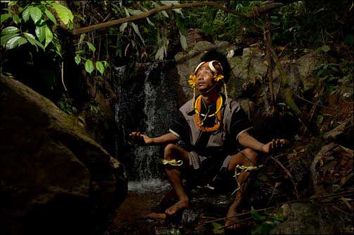 Lahe, Myanmar - (january 2013) :Heimi warrior refreshing near Lahe on (january 2013) in Lahe, Myanmar. (Photo by Stephan Gladieu/Getty Images)