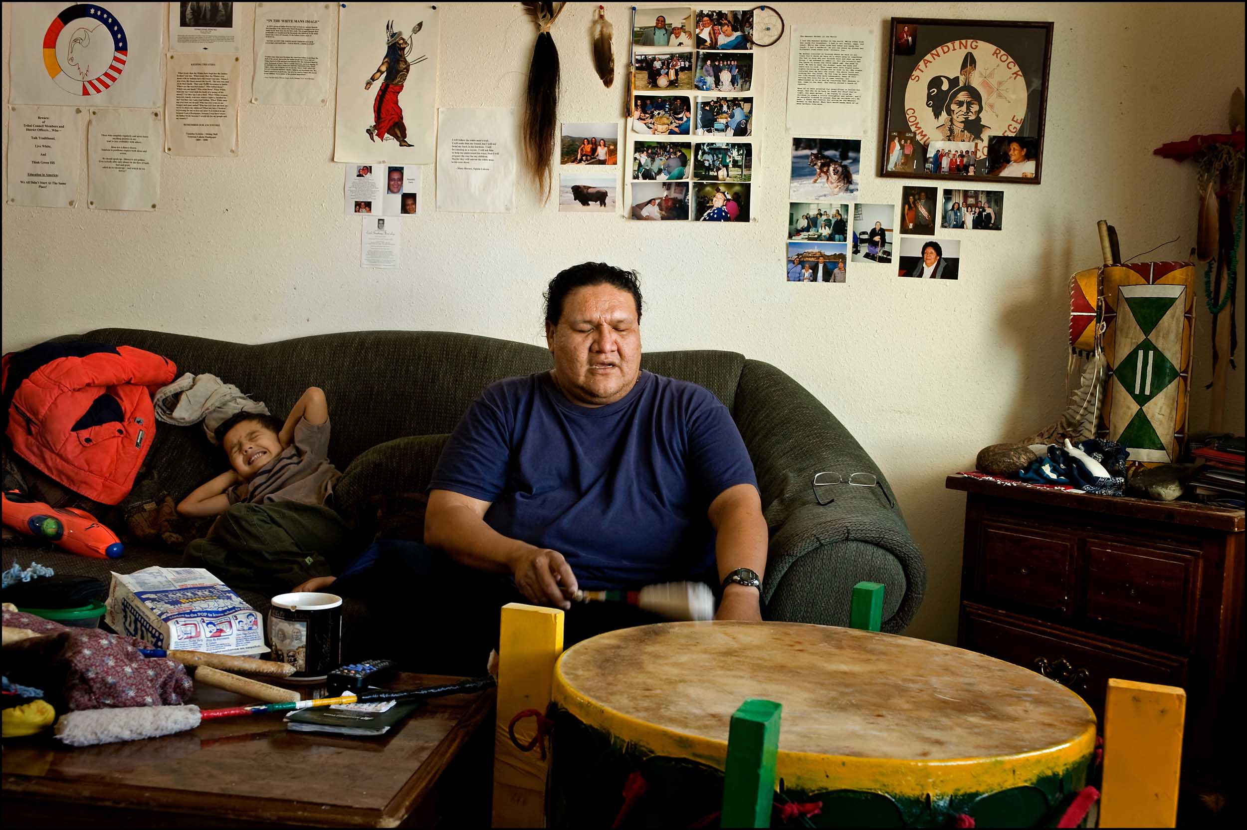 Tinnekkia Williams, a women’s advocate, watches TV with her sons. Part Black, Porto-Rican and Native-American, she lived in Minneapolis (Minnesota) before marrying a man from Standing Rock. A victim of domestic violence, she has just filed for divorce. She wants to develop a sexual assault response team on the reservation to better assist the victims and establish a zero-tolerance policy.n the territory of legendary Sioux warrior