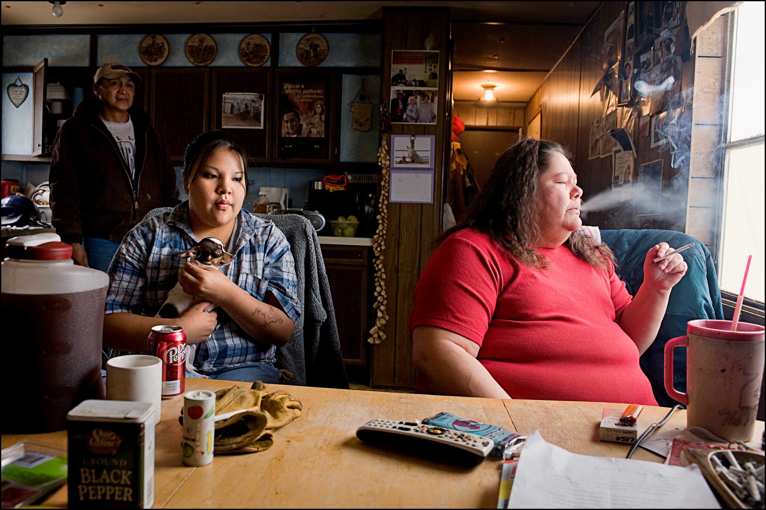 Diane Kills Crow, who suffers permanent injuries from domestic violence, poses with Tanya, her 18-year-old daughter, and Tylayna, her 10-year-old granddaughter. At 47 she’s a recovering alcoholic and now works at Pretty Bird Woman House as a women’s advocate.n the territory of legendary Sioux warrior